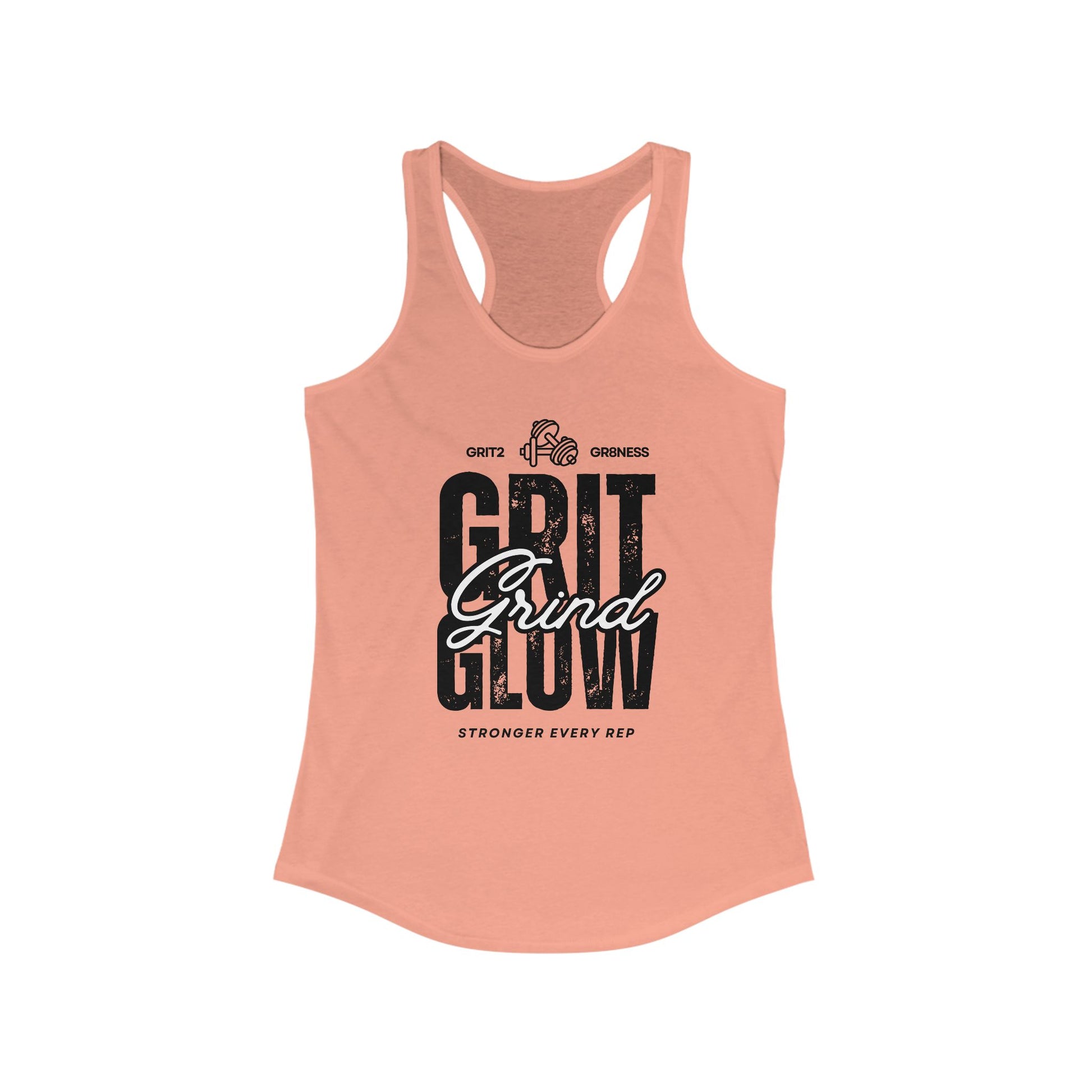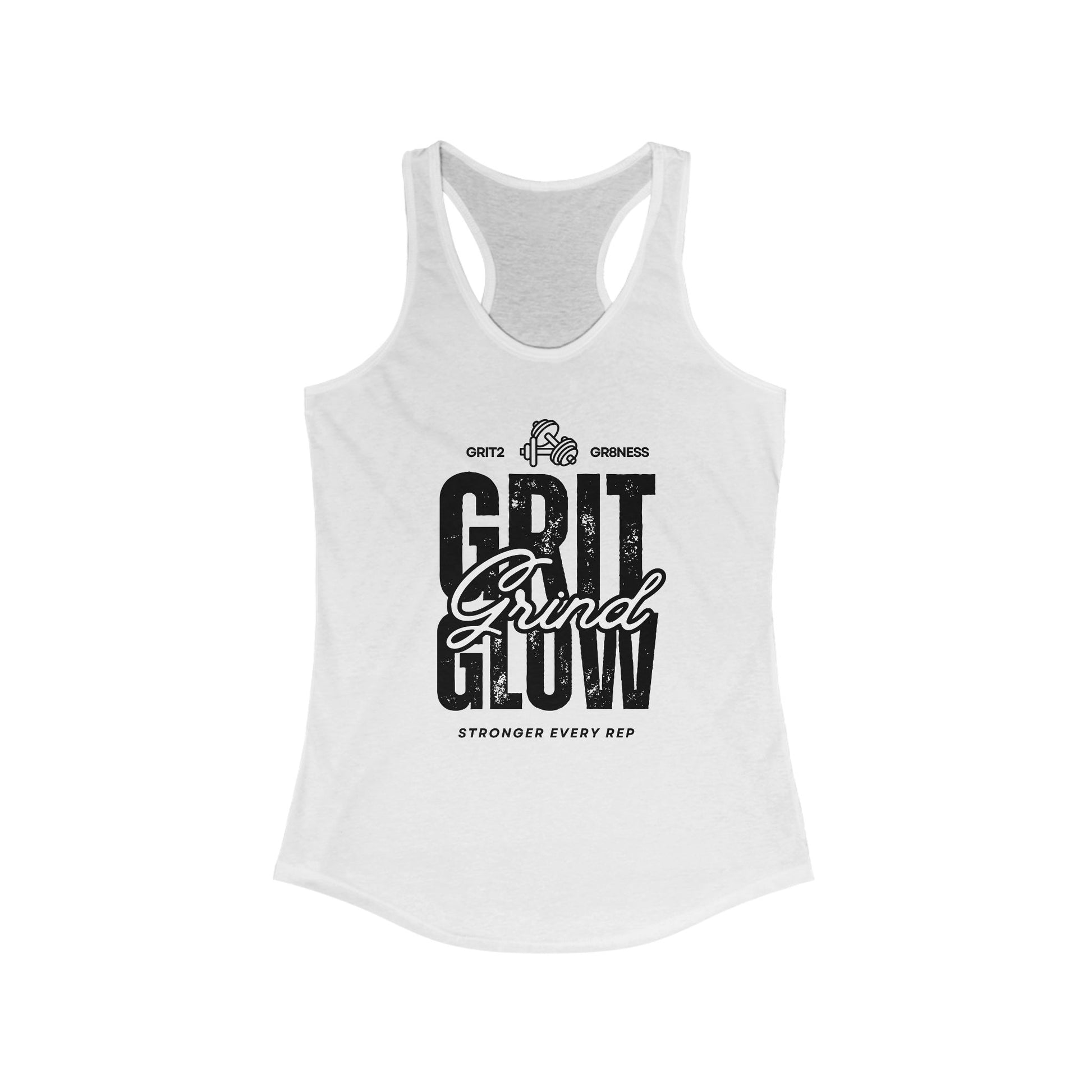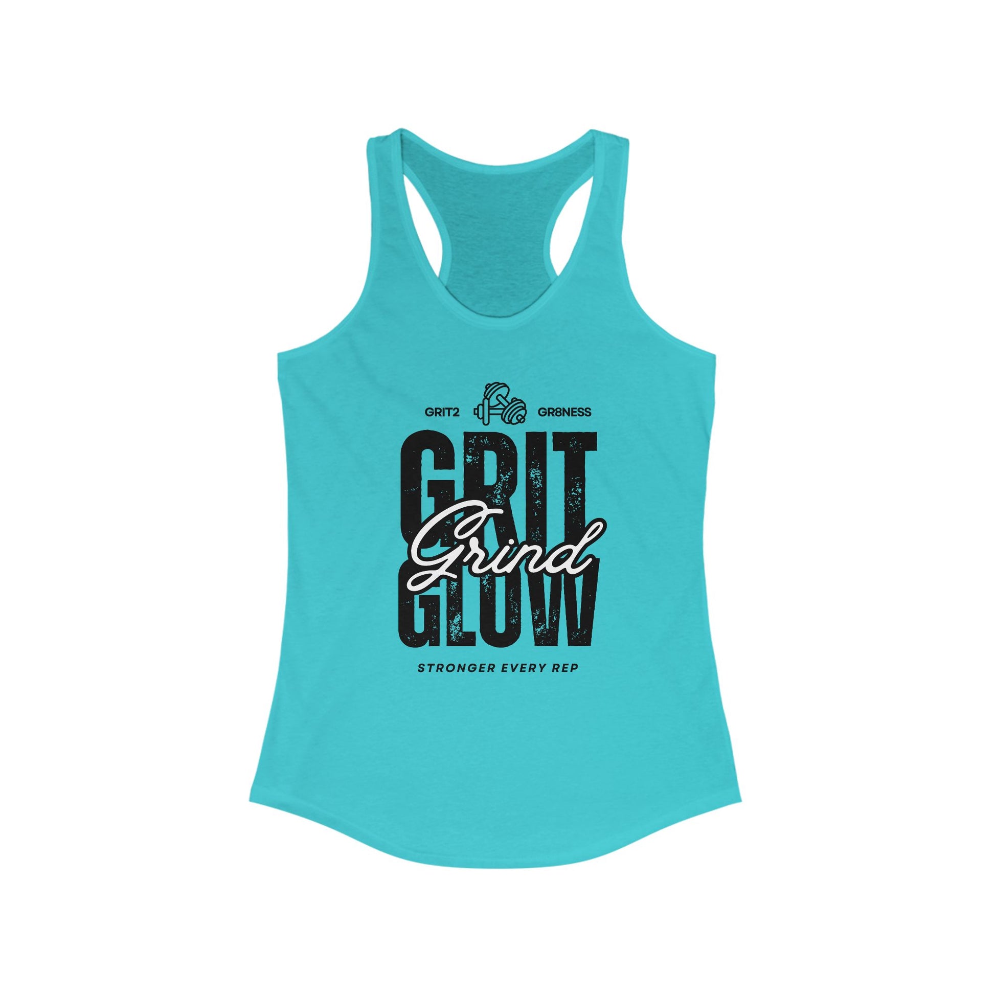 Strength. Hustle. Confidence. The Grit. Grind. Glow. Racerback Tank is designed for women who put in the work and shine while doing it. Whether you're hitting the gym, chasing goals, or owning your day, this tank is your reminder that grit fuels growth, grind builds strength, and glow is the result of your hustle